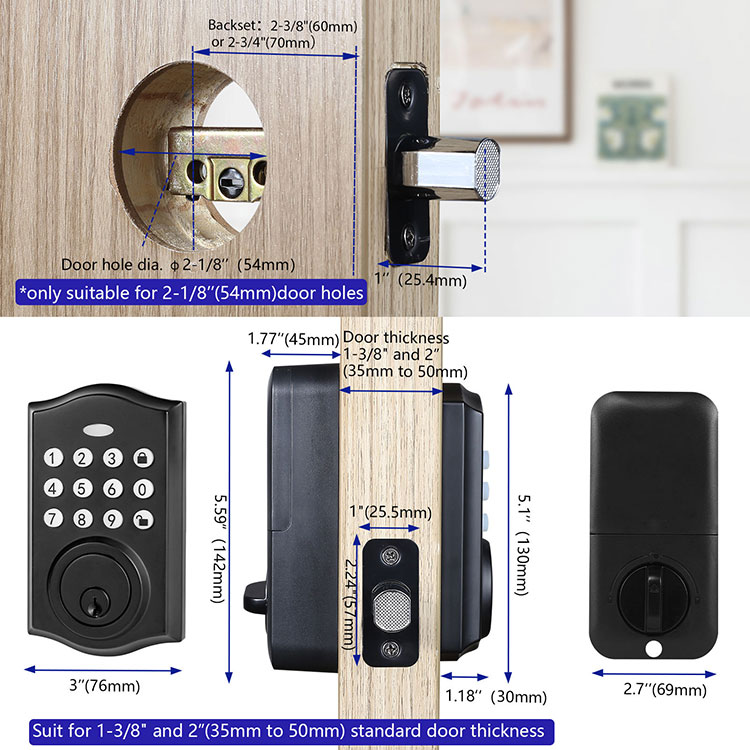 | Grosimea ușii: | 35- 50mm | Lungimea codului: | 6-13 cifre |